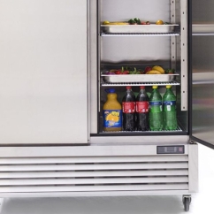 Cette armoire de stockage grande capacité fait 800 mm de profondeur pour une capacité de 1300 L brut de produits alimentaires frais. Avec une plage de températures comprise entre +2°C et + 8°c et un système de réfrigération ventilée, elle conserve parfaitement vos produits. Dotée de 2 portes battantes à fermeture automatique et d’un contrôle digital de la température, elle est pratique et simple d’utilisation. Spécialement conçue pour le stockage des aliments, elle n’est pas tropicalisée mais fonctionne très bien jusqu’à une température ambiante de +32°C.