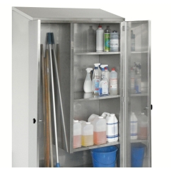 Pratique et fiable, cette armoire en inox 304L dispose de deux portes battantes doublées pour plus de stabilité. Modulable, vous pouvez profiter d’une cloison verticale et 3 petites étagères dont 1 réglable en hauteur.