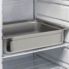 Agencez facilement et rapidement l’espace de stockage de votre frigo négatif professionnel grâce aux 6 clayettes fournies avec l’équipement. Contrôlez aisément vos réglages avec le thermostat numérique et sécurisez l’ouverture de la porte à l’aide de la serrure de série.
