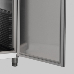 L'armoire est dotée de glissières en inox en forme de « L », permettant une insertion aisée de vos plaques, grilles ou bacs aux dimensions standard Euronorme 600x400.