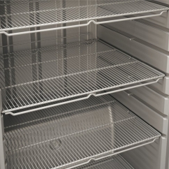 Sa conception facilite les opérations de nettoyage, réduisant ainsi le temps nécessaire. Cette armoire se distingue par sa faible consommation d'énergie et les coûts d'exploitation réduits. La porte est équipée d'un dispositif de rappel automatique pour éviter les pertes de froid en cas de mauvaise fermeture, offrant également un chargement confortable grâce à son maintien stable à 90°.