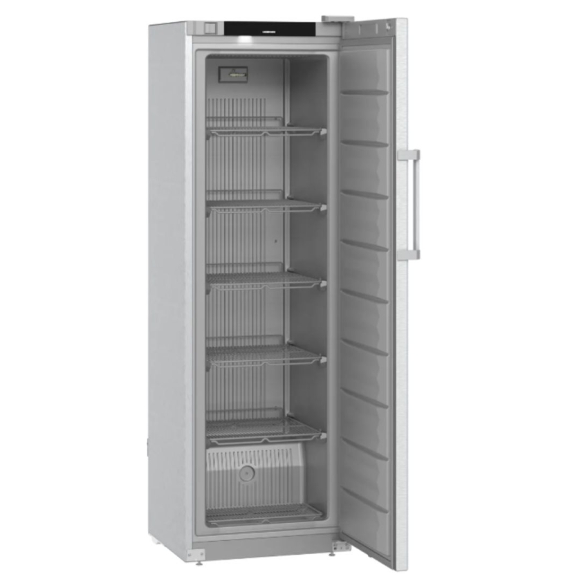 Avec une capacité brute de 316 litres, cette armoire offre un volume de stockage adapté à la conservation des produits surgelés. La température réglable de -9 à -26 °C permet d’ajuster facilement les conditions de conservation selon les besoins. Le refroidissement repose sur un système de réfrigération statique, conçu pour maintenir une température stable à l’intérieur de l’appareil. Afin de limiter l’apparition de givre, la technologie SmartFrost réduit la formation de givre sur les parois et sur les produits stockés, ce qui rend les opérations de dégivrage moins fréquentes et plus simples à réaliser. L'armoire fonctionne au réfrigérant R290, un fluide qui assure un refroidissement efficace tout en étant plus respectueux de l’environnement.