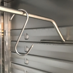 La barre de charge, structure en inox spéciale gibier, avec 2 crochets à viande Esses de 4 mm de diamètre pour 80 mm de longueur sont disponibles en accessoire.