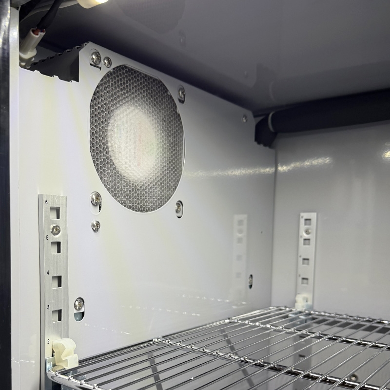 Avec sa capacité de stockage de 500 L, gardez vos boissons au frais ! Le froid ventilé de l'arrière-bar permet une excellente répartition du froid ! La porte vitrée et la lumière intérieure LED vous offrent de multiples avantages. C'est très pratique pour visualiser facilement les boissons commandées pendant un service et pouvoir ainsi ajuster votre stock si besoin. Résultat : un gain de temps non-négligeable. Grâce au thermostat numérique de cet arrière-bar, réglez avec précision la température de votre appareil entre 2°C et 8 °C.