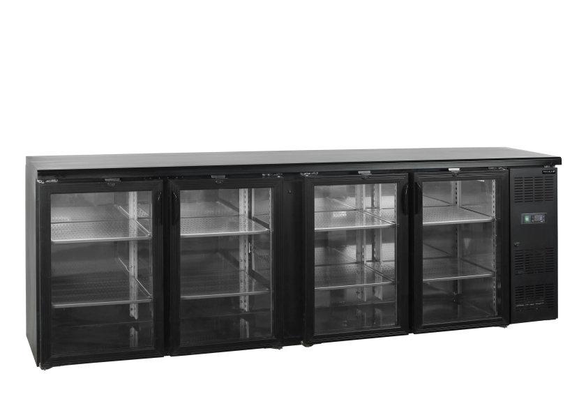 Doté de 4 portes vitrées à fermeture automatique avec serrure, le CBC410G garantit un accès pratique et sécurisé aux boissons. Les 8 tablettes ajustables en inox 304 et les 10 pieds réglables offrent une organisation flexible et une stabilité renforcée. Sa finition intérieure effet miroir, associée à un éclairage LED, met en valeur vos produits et renforce leur visibilité. Vous pouvez moduler l’arrière de bar selon vos besoins, en remplaçant les portes par des tiroirs