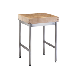 Équipement indispensable au sein des boucheries et des charcuteries, ce modèle de billot sur pieds est conçu pour les surfaces de vente. Ce billot en bois de 100 mm d'épaisseur peut supporter jusqu'à 200 Kg de charge maximale. Pour garantir votre sécurité, cet élément est doté de 4 pieds en tube 40x40 mm avec vérins anti-glissement.