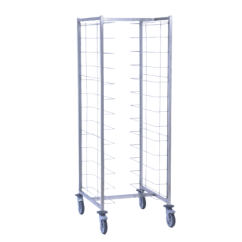 Ce chariot cafétéria de la marque Tournus dispose de 2 colonnes de 12 niveaux pouvant accueillir jusqu'à 24 plateaux de 480 à 560 mm de longueur.