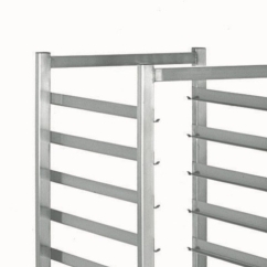 Avec une hauteur de 1490 mm et 15 niveaux, ce chariot permet d’optimiser l’organisation des bacs gastronormes. L’espacement vertical de 81 mm entre les glissières facilite l’insertion et le retrait des bacs. Chaque niveau peut supporter jusqu’à 20 kg, pour une charge totale maximale de 250 kg. Ce chariot est constitué de panneaux assemblés par entretoises soudées, contribuant à la rigidité de l’ensemble et limitant les déformations lors de charges importantes.