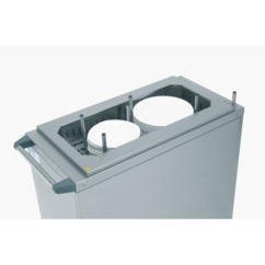 Pour simplifier leur nettoyage, les chariots disposent d'un intérieur rayonné, un fond et côtés avec évacuation en partie inférieure. La construction est en inox et les distributeurs d'assiettes sont amovibles.