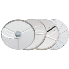 - Dotation(s) 1 cuve inox 4,5 L | Cutter : 1 couteau à lame lisse en inox | Coupe-légumes : 1 goulotte demi-lune 1,6 L + 1 goulotte cylindrique Ø 58 mm