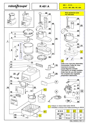 - Référence compatible 4 Réf R401 / 2425 / modèle R 401 A / repère 4 / N° série 467---,655---,797---,934---