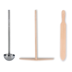 Nous avons réalisé une sélection des accessoires Krampouz les plus demandés : le râteau à crêpes en hêtre plat, la spatule en hêtre et la louche en inox. Ces accessoires sont disponibles sur l'ensemble de nos crêpières Krampouz.