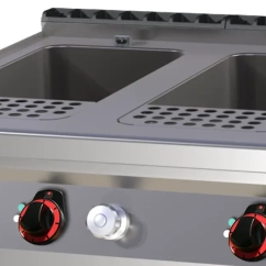 Ce cuiseur à pâtes électrique est idéal, offrant une grande capacité de 2 x 33 litres pour cuire une grande quantité de pâtes en une seule fois. Il est équipé d'un soubassement pour un rangement organisé et un entretien simplifié.