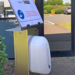 La colonne est également équipée d’un panneau de communication transparent placé au-dessus du distributeur de gel, vous pouvez facilement indiquer les consignes d’utilisation ou transmettre le message de votre choix à vos utilisateurs.