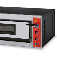 Ce four à pizza peut accueillir jusqu'à 6 pizzas de Ø36 cm dans sa chambre. La température de cuisson est comprises entre 50°C et 500°C et se règle facilement grâce aux deux thermostats mécaniques. Placés en façade du four électrique, ils permettent de contrôler indépendamment la température de la voute et celle de la sole.