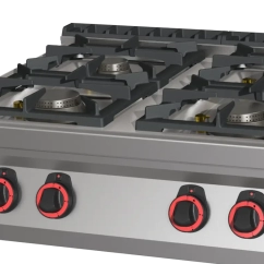 Optez pour ce réchaud professionnel gaz à poser conçu avec 4 brûleurs en laiton amovible. Les nervures hygiéniques de la plaque supérieure et l'absence d'angles et d'arêtes vives garantissent un nettoyage facile et efficace.