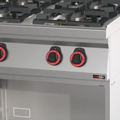 Optez pour ce réchaud professionnel à gaz sur baie, conçu avec 4 brûleurs en laiton amovibles. Les nervures hygiéniques de la plaque supérieure et l'absence d'angles et d'arêtes vives garantissent un nettoyage facile et efficace.