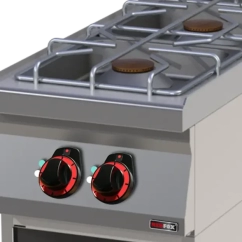 Ce fourneau à gaz est conçu pour offrir une performance de cuisson optimale. Il est équipé de 2 brûleurs en laiton, chacun ayant une puissance de 8 kW, permettant une chauffe rapide et efficace.