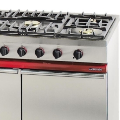 Avec ce fourneau gaz, profitez de tout l’espace disponible avec ces 4 brûleurs puissances et de tailles différentes. Il est équipé de 2 brûleurs de 3 kW, 1 brûleur de 4 kW, 1 brûleur de 1.5 kW et 1 brûleur de 5 kW. L’entraxe entre les feux est calculé pour permettre la manipulation de plusieurs casseroles sans gêner l’utilisation des autres brûleurs.