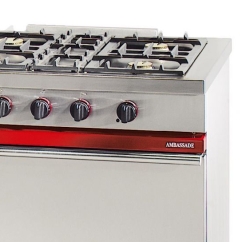 Avec sa table de cuisson équipée de 4 feux gaz et d'un four de 4 kW en soubassement, ce Fourneau Ambassade trouve facilement sa place dans vos habitudes de cuisine. De largeur 800 mm pour 900 mm de hauteur et 650 mm de profondeur, il est particulièrement adapté pour recevoir des plaques pâtissières aux dimensions euronormes.