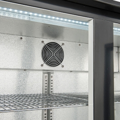Les 2 portes vitrées coulissantes et la lumière intérieure LED vous offrent de multiples avantages. C'est également très pratique pour visualiser facilement les boissons commandées pendant un service et pouvoir ainsi ajuster votre stock si besoin. Résultat : un gain de temps non-négligeable. Grâce au thermostat numérique de cet arrière-bar, réglez avec précision la température de votre appareil entre 1°C et 10 °C. Avec sa taille compacte, il s'installe facilement peu importe la configuration de votre lieu de travail.