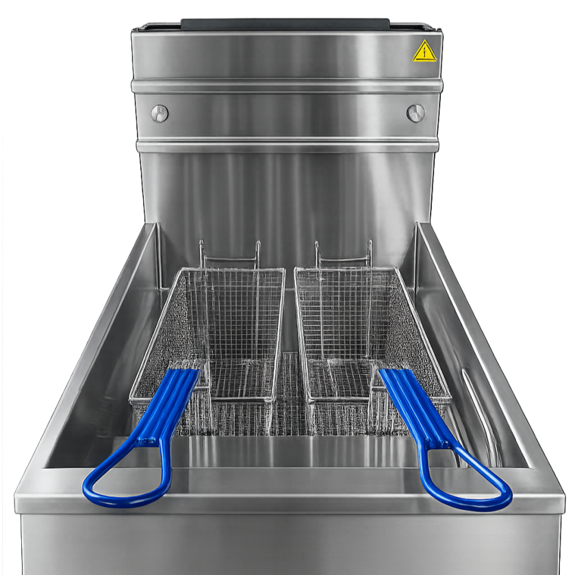 Équipée de 3 brûleurs en fonte haute performance, cette friteuse à gaz de 27 kW dispose de corps de chauffe tubulaires assurant une montée en température rapide et une chauffe homogène de l’huile. Avec une capacité de 25 L, elle offre un débit pouvant atteindre 40 kg de frites par heure.