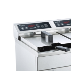La friteuse professionnelle double à induction IFRY8+8 est dotée d’une puissance de 2 x 3500 Watts avec une faible consommation d'énergie. La nouvelle technologie à induction garantit une chauffe rapide de l’huile et une cuisson homogène grâce à une puissante répartition de la chaleur dans l'ensemble de la cuve. Cette friteuse à poser dispose d’une capacité de 2 x 8L maximum.