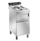 Cette friteuse sur coffre triphasée de 2x10 litres est dotée de 2 zones de fritures indépendantes contrôlées par un commutateur. Avec ses deux paniers de 10 litres (dim 128 x 320 x 145mm) produisez jusqu'à 30 Kg de frites/heure, idéal pour les besoins de haut rendement.