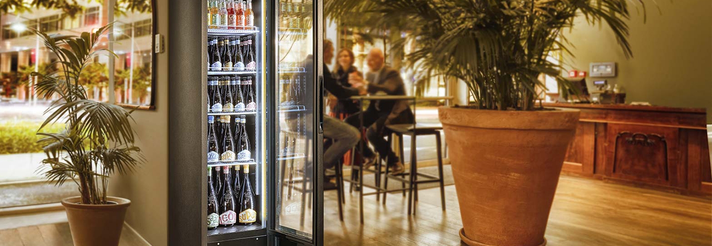 Au contraire, vous voulez exposer l’armoire à boisson et la placer en libre service directement au contact des clients ? Dans ce cas, il vaut mieux opter pour une armoire vitrée avec une porte transparente. Les clients peuvent ainsi choisir les produits visuellement avant de les acheter.