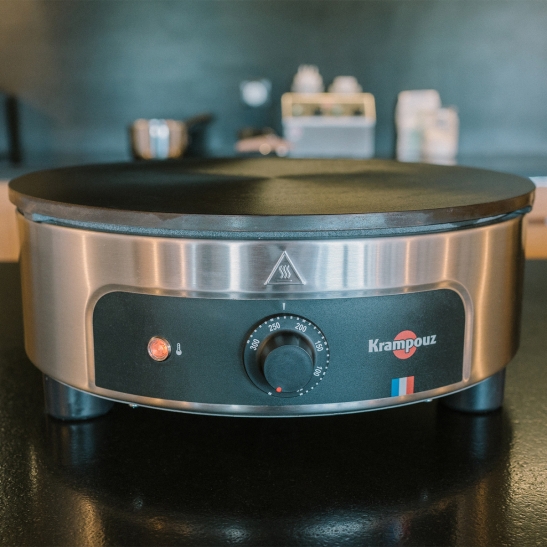 KRAMPOUZLes gaufriers Krampouz bénéficient de toutes les qualités techniques qui ont forgé la réputation de la marque en matière de cuisson de précision. Le Système ‘Easy Clean’ permet le démontage instantané des fers du gaufrier facilitant ainsi leur nettoyage et celui de l’ensemble des éléments. Le Savoir-Faire Krampouz : La nouvelle technologie ‘Pack Résistance’ brevetée assure une répartition exceptionnelle de la chaleur sur toute la surface des fers pour une cuisson parfaite et homogène. L’isolation thermique de la résistance évite les déperditions de chaleur et contribue à l’homogénéité de la chauffe et à la performance de la cuisson. La régulation thermostatique de 50 °C à 300 °C permet un contrôle précis de la température.