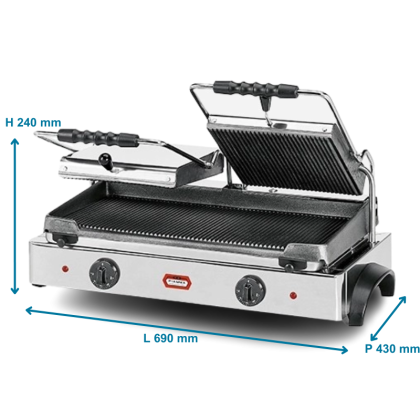 • Grill Panini Double avec plaque en fonte lisse et rainurée
