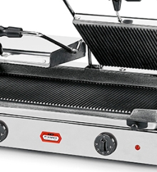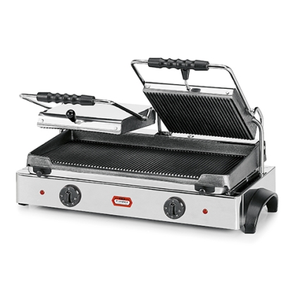 Équipé de 2 couvercles supérieurs, il permet la préparation simultanée de vos paninis. Avec une puissance de 3,6 kW, une alimentation de 230V, un thermostat réglable de 0°C, il assure une cuisson optimale.