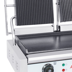 Fabriqué en acier inoxydable, ce grill panini fait preuve d'une grande robustesse. La poignée est ergonomique et résiste à la chaleur. Cet appareil a été fabriqué pour être rentabilisé rapidement.