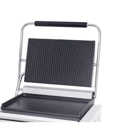 Machine panini ergonomique et performanteFabriqué en acier inoxydable, ce grill panini fait preuve d'une grande robustesse. La poignée est ergonomique et résiste à la chaleur. Cet appareil a été fabriqué pour être rentabilisé rapidement. Les plaques mixtes de cette machine a panini permettent de marquer facilement votre produit, elles sont idéales pour les paninis mais pas seulement ! Vous pouvez vous en servir pour cuire du poisson, de la viande, des légumes, des sandwiches, des toasts, des croque-monsieurs...