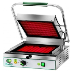 UN GRILL PANINI ALLIANT PERFORMANCES ET SÉCURITÉCe grill panini est conçu en acier inoxydable. Ce matériau est la garantie d'une grande robustesse. La poignée est très pratique et résiste à la chaleur. L'isolation thermique de cet appareil est en fibre-mécanique. Sa plaque en vitrocéramique professionnelle est capable de maintenir votre température de cuisson pendant une durée très importante. Grâce à l'utilisation des éléments à infrarouge, la température que vous avez programmé sera atteinte très rapidement. La cuisson de vos paninis est ainsi parfaitement homogène et se fait très rapidement. La structure en inox et les plaques de cuisson en vitrocéramique de l'appareil permettent un nettoyage simplifié de celui-ci. Ce grill panini professionnel est équipé d'un thermostat de sécurité, un voyant lumineux s'allume dès que celui-ci s'enclenche. Les résistances sont directement en contact avec la plaque de l'appareil afin de garantir une meilleure conductivité de la chaleur.