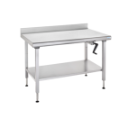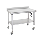 Certaines tables en inox en stock possèdent une hauteur de travail ajustable avec les pieds. Les pieds sont composés de vérins réglables pour ajuster facilement la hauteur.