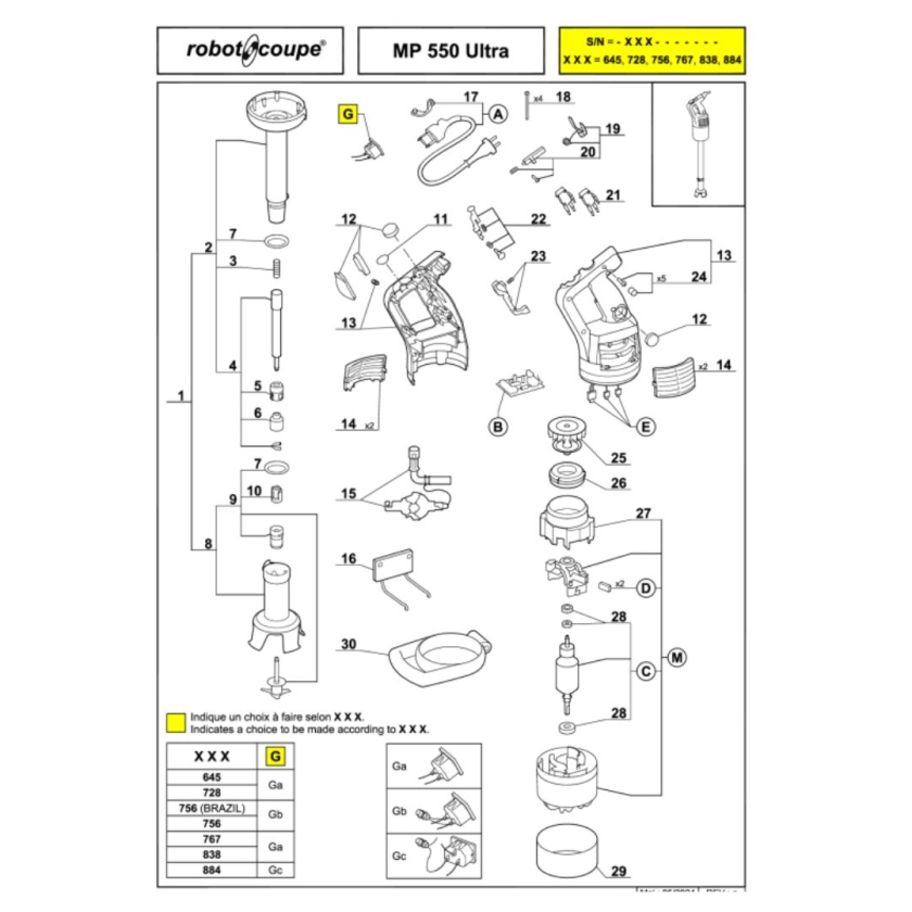 - Référence compatible 6 Réf MP550 ULTRA / 34820LH / modèle MP 550 Ultra / repère 22 / N° série 645---,728---,756---,767---,838---,884---