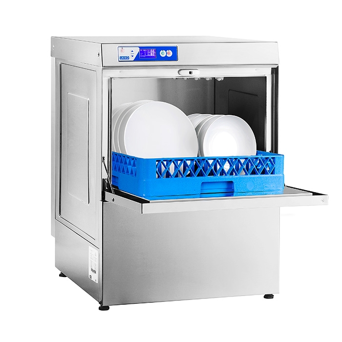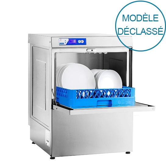 Ce lave-vaisselle professionnel a été conçu pour une utilisation simple. La hauteur de passage utile est de 31 cm avec un panier de 50 x 50 cm. La productivité de cette machine peut atteindre 35 paniers/heure soit environ 560 assiettes en fonction du programme choisi. Dôté de 5 programmes de lavage de 102 à 192 secondes avec un rinçage préréglée entre 80°C et 85°C, il permet d'obtenir un très bon rendement. La faible consommation d'eau (2,8L par cycle) de ce lave-vaisselle permet une optimisation de la consommation des produits lessiviels et des économies d'énergie.