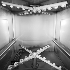 Les bras de lavage sont conçus en polypropylène renforcé facilitant le nettoyage, la maintenance et diminuant les dépôts de calcaire. Attention, pour éviter les éventuels problèmes liés à la dureté de l'eau, il est fortement conseillé d'utiliser un adoucisseur en amont de votre équipement