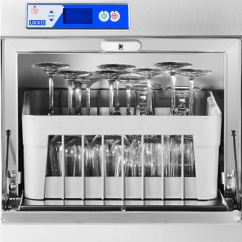 Ce lave-verres a été conçu pour une utilisation simple et efficace. La hauteur de passage utile est de 29.5 cm avec un panier de 40 x 40 cm. La productivité de ce lave-verres peut atteindre 33 paniers/heure soit environ 500 verres par heure. Le cycle de lavage en 120 secondes avec un rinçage préréglée entre 80°C et 85°C permet d'obtenir un très bon équilibre entre efficacité et temps. Ce lave verres avec pompe de vidange de série indispensable pour les évacuations d’eau situées en hauteur ou dans un mur.