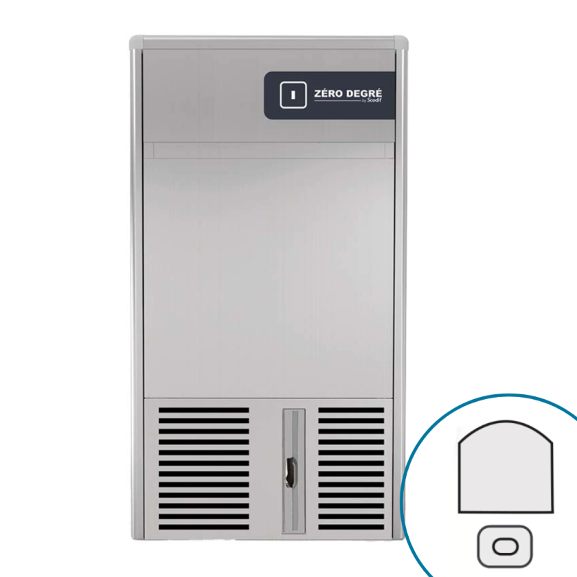 Dotée d'un bac intégré, cette machine à glaçons est idéale pour les espaces restreints et convient parfaitement pour une installation sous un plan de travail grâce à sa ventilation par la façade avant. Afin de faciliter l’installation, tous les raccordements (eau/électricité) peuvent se faire latéralement ce qui permet une réduction de la profondeur.