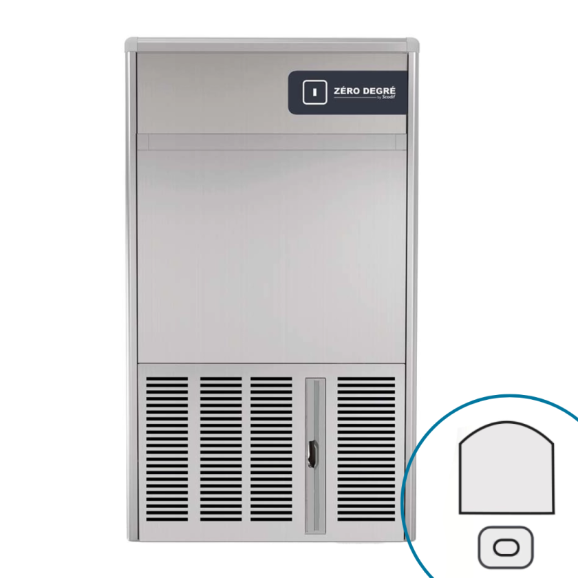 Dotée d’un bac intégré, cette machine à glaçons convient aux espaces restreints et peut être installée sous un plan de travail grâce à une ventilation frontale. Les raccordements eau et électricité latéraux simplifient l’installation et permettent de réduire l’encombrement en profondeur.