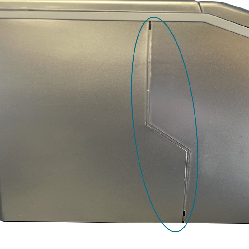 - Détail défaut(s) Rayures et léger choc sur le dessus / léger décalage coté gauche