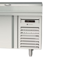 Équipé d'un couvercle rabattable, d'un thermostat électronique avec un afficheur digital économique en énergie, et d'une alarme haute et basse température. Les pieds sont en inox et réglables en hauteur de 135 à 210 mm. Le meuble est livré avec une clayette rilsan GN1/1 et un jeu de glissière par porte réglable en hauteur.