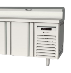 Équipé d'un couvercle rabattable, d'un thermostat électronique avec un afficheur digital économique en énergie, et d'une alarme haute et basse température. Les pieds sont en inox et réglables en hauteur de 135 à 210 mm. Le meuble est livré avec une clayette rilsan GN1/1 et un jeu de glissière par porte réglable en hauteur.