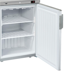 Ce mini congélateur en inox est livré avec 2 clayettes fixes. L'appareil fonctionne avec le gaz R600a, plus économique et avec un impact quasi nul sur l'environnement