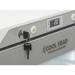 Cette mini armoire réfrigérée de 200 litres, au design blanc, est dotée d’un intérieur thermoformé qui facilite l'entretien. Elle dispose d'un système de dégivrage automatique à l'arrêt du compresseur, garantissant une maintenance simplifiée.