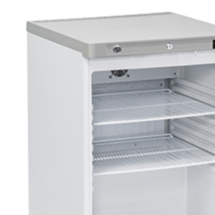 Afin de garder l'air chaud du moteur loin de l'unité de refroidissement, le condenseur est monté à l'arrière de l'appareil. Son système de refroidissement assisté par ventilateur permet de diffuser le froid de façon homogène. Avec sa taille compacte, elle s'intégrera facilement dans votre espace de travail. Agencez facilement et rapidement l'espace disponible dans l'armoire réfrigérée avec les 2 clayettes amovibles.