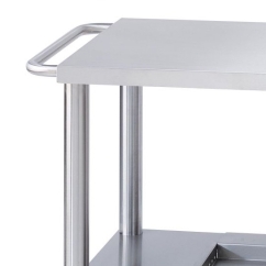 Ce Support mobile en acier inoxydable peut devenir un indispensable dans votre cuisine. Très maniable grâce à ses poignées latérales et ses 4 roulettes, il peut se déplacer facilement dans tout votre espace. Il dispose d'une tablette intérieure avec découpe de 510 x 320 mm.