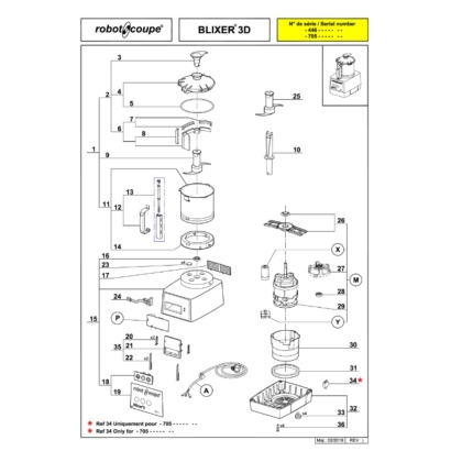 - Référence compatible 3 Réf BLIXER3 / 33197 / modèle BLIXER 3 D / repère 10 / N° série 446--- / 705---